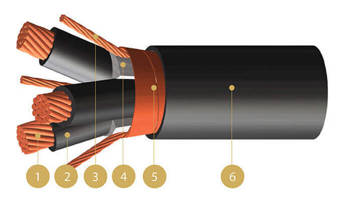 - Color-coded per ICEA Method 4, Individual conductors colored black with conductor number ink printed on surface